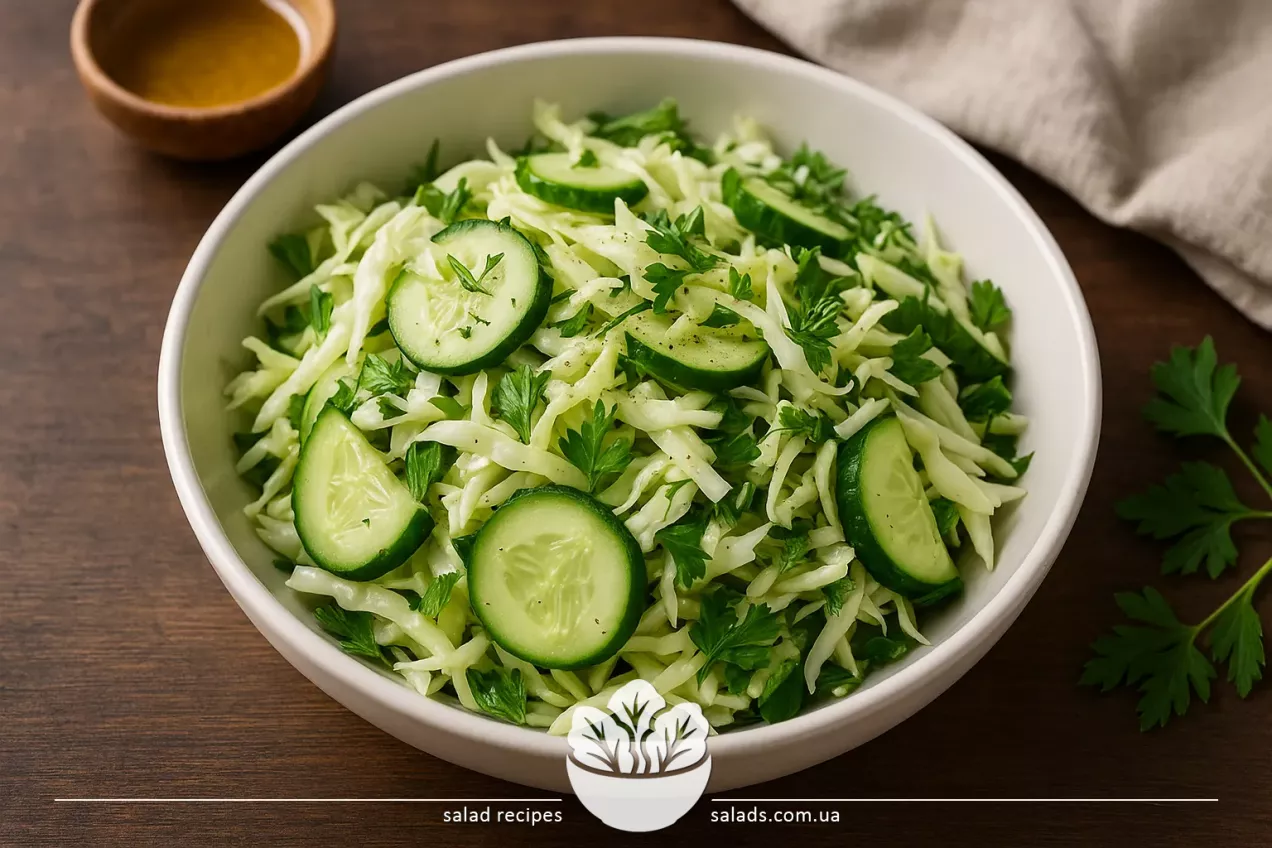 I always make this salad right before serving. It doesn’t store well – cucumbers and cabbage quickly release juice. On weekdays, I serve it with meat or fish dishes, and on weekends – as a standalone dish with bread or boiled potatoes. It’s light but filling thanks to fiber, and ideal for those who follow a healthy lifestyle or simply enjoy straightforward food without extra calories.